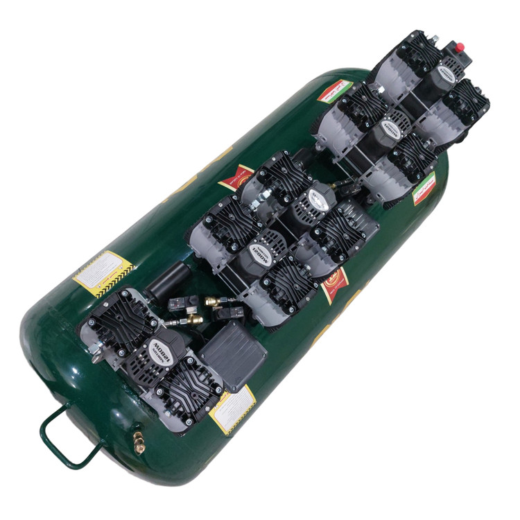 کمپرسور باد ۳۵۰ لیتری سایلنت نوتورن یکی از قدرتمندترین و در عین حال کمصداترین کمپرسورهای موجود در بازار است که برای کارگاههای حرفهای، خط تولیدها و استفادههای مداوم طراحی شده است. این دستگاه با داشتن ۵ موتور ۱۲۸۰ واتی مجموع توان بالایی ارائه میدهد و میتواند بهراحتی نیاز ابزارهای بادی پرمصرف را تأمین کند.