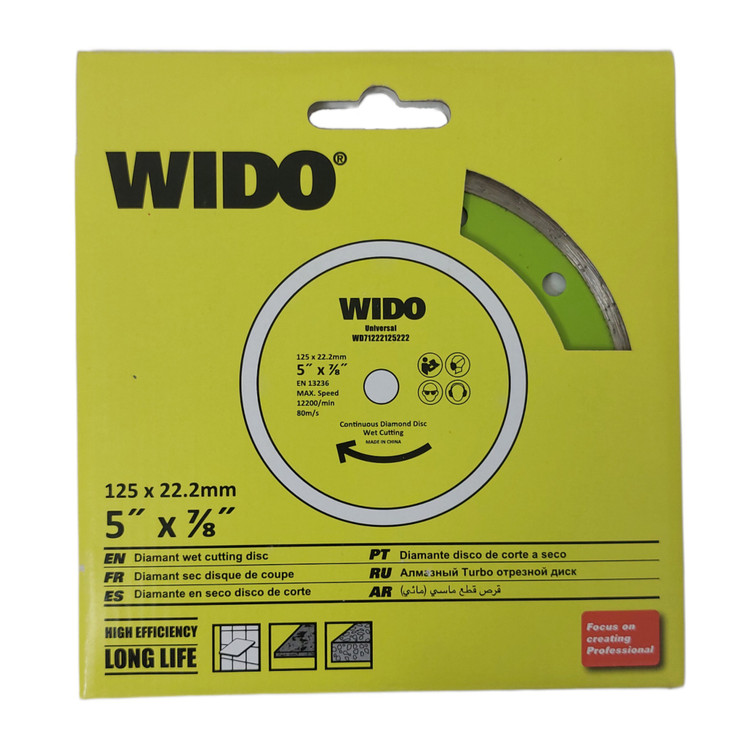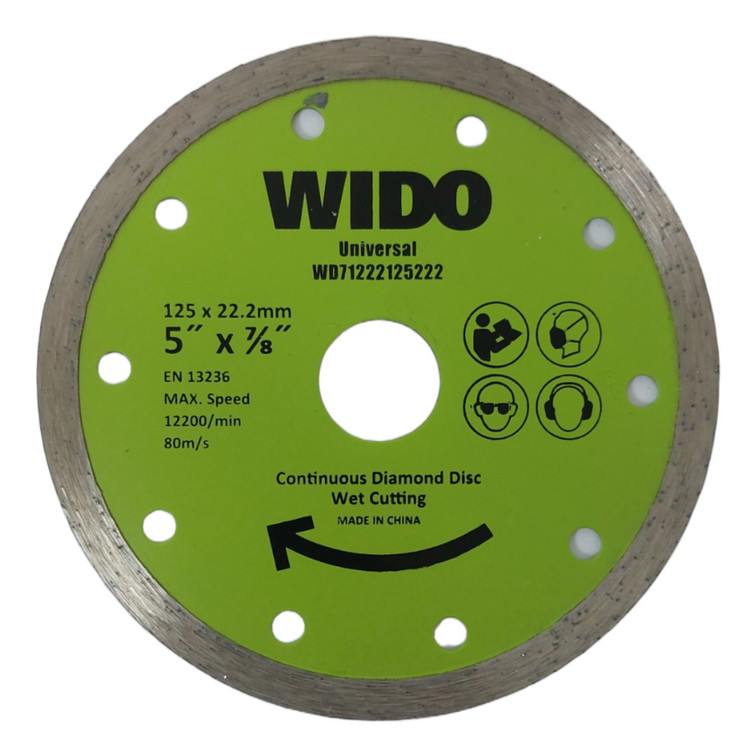 صفحه سرامیکبر VIDEO با قطر ۱۲۵ میلیمتر طراحی شده تا کاربردی برای برش کاشی، سرامیک و مواد مشابه در پروژههای ساختمانی برش دیواری یا کف باشد. این صفحه احتمالاً دارای لبه الماسه یا پوشش دانه الماس است تا بتواند با مقاومت بالا سرامیک را برش دهد بدون اینکه باعث لبپریدگی یا ترک در سطح شود.